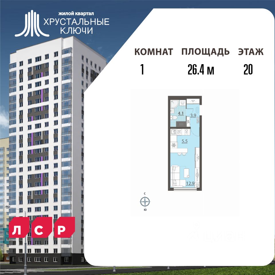 Квартира располагается на 20 этаже 25-этажного дома в ЖК Хрустальные Ключи.