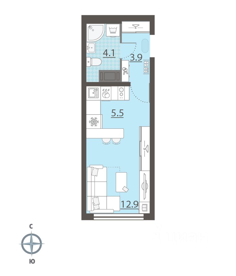 Жилая площадь 12.9 м2, кухня 5.5 м2, чистовая отделка. Раздельных санузлов - нет, балконов - нет, лоджий - нет.