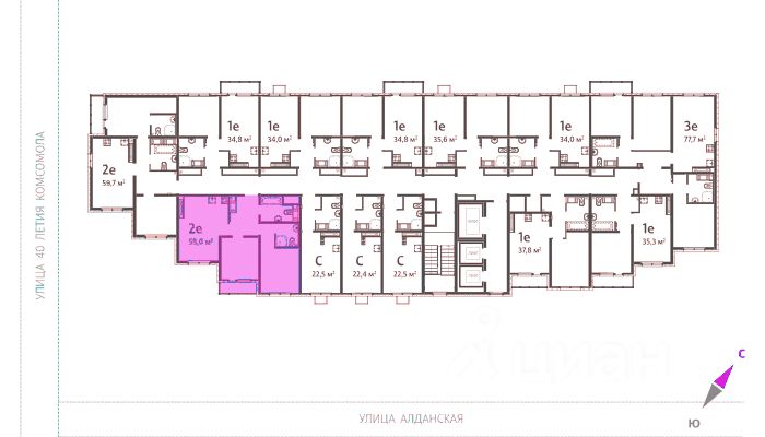 Квартира располагается на 22 этаже 25-этажного дома в ЖК Малахит.