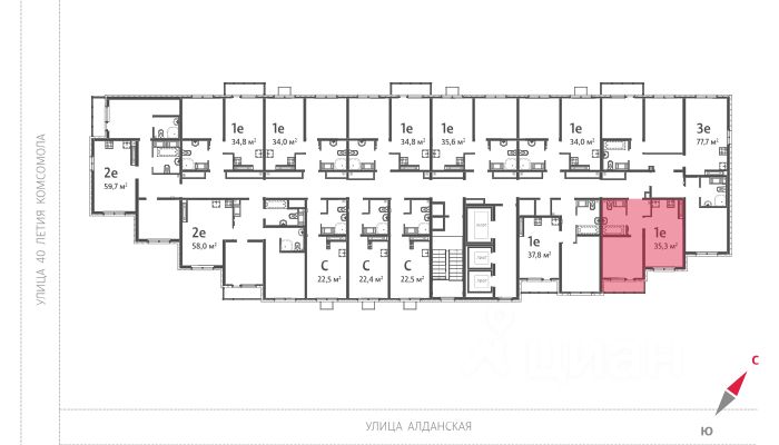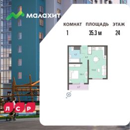 Квартира располагается на 24 этаже 25-этажного дома в ЖК Малахит.