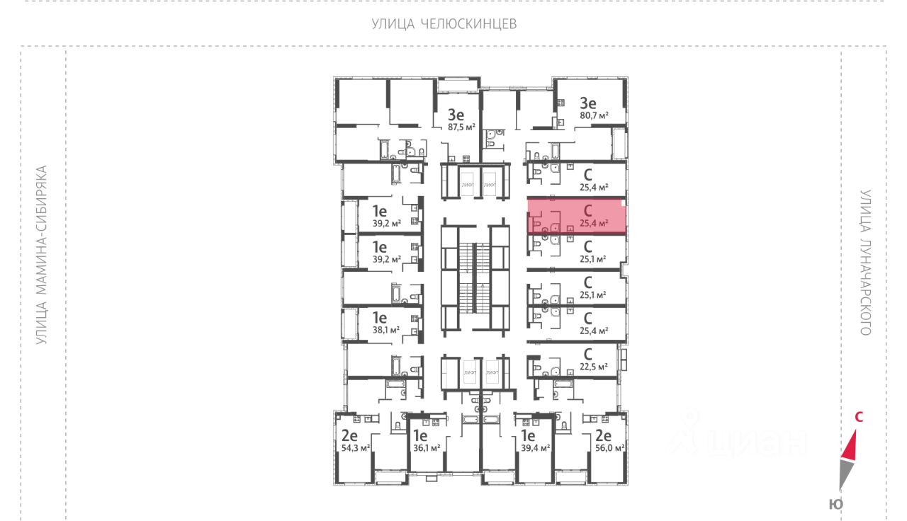 Квартира располагается на 15 этаже 32-этажного дома в ЖК Азина, 16.