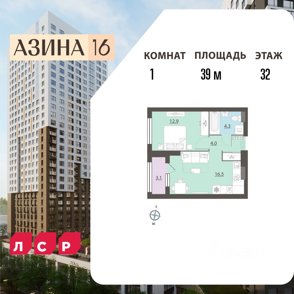 Квартира располагается на 32 этаже 32-этажного дома в ЖК Азина, 16.