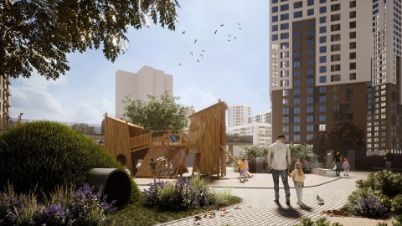 Жилой квартал расположится на участке площадью 2,6 га в границах улиц Челюскинцев Луначарского Азина Мамина-Сибиряка. Он будет состоять из шести стильных высоток, паркинга и детского сада. Общее дворовое пространство, закрытое от проезда автомобилей, обеспечит жителям безопасность и уют.