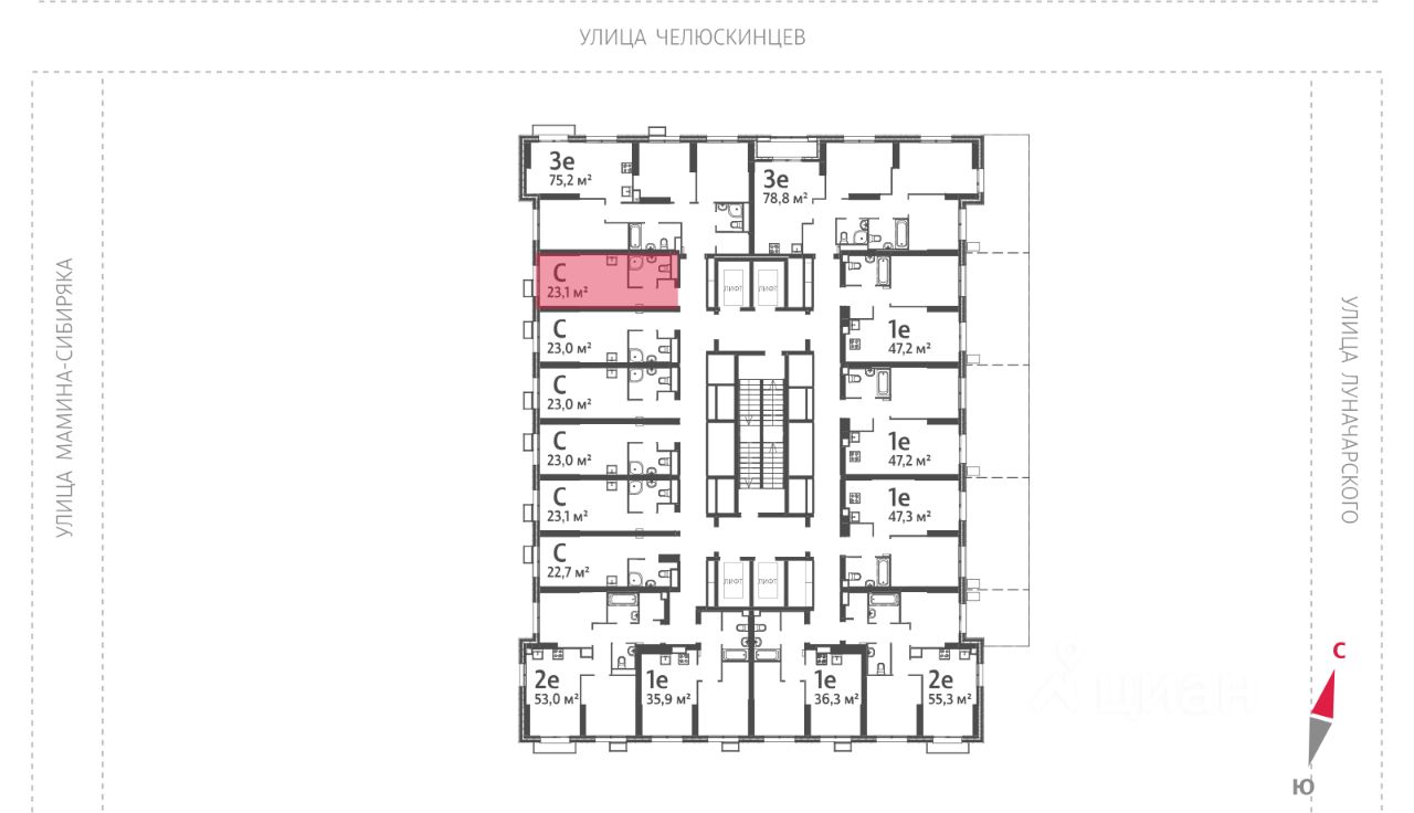 Жилой квартал расположится на участке площадью 2,6 га в границах улиц Челюскинцев Луначарского Азина Мамина-Сибиряка. Он будет состоять из шести стильных высоток, паркинга и детского сада. Общее дворовое пространство, закрытое от проезда автомобилей, обеспечит жителям безопасность и уют.