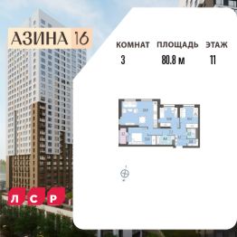 Квартира располагается на 11 этаже 32-этажного дома в ЖК Азина, 16.