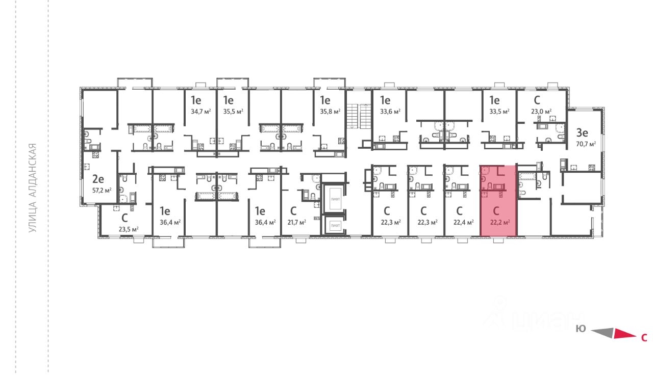 Квартира располагается на 13 этаже 15-этажного дома в ЖК Малахит.