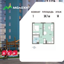 Квартира располагается на 14 этаже 15-этажного дома в ЖК Малахит.