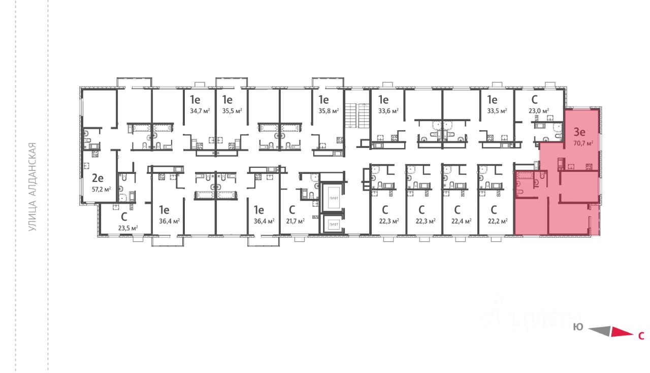 Квартира располагается на 14 этаже 15-этажного дома в ЖК Малахит.