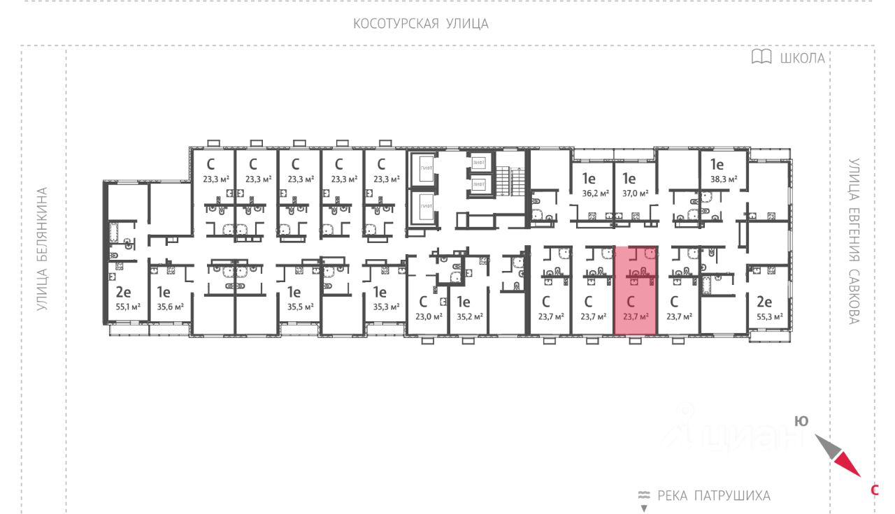 Квартира располагается на 2 этаже 24-этажного дома в ЖК Меридиан.