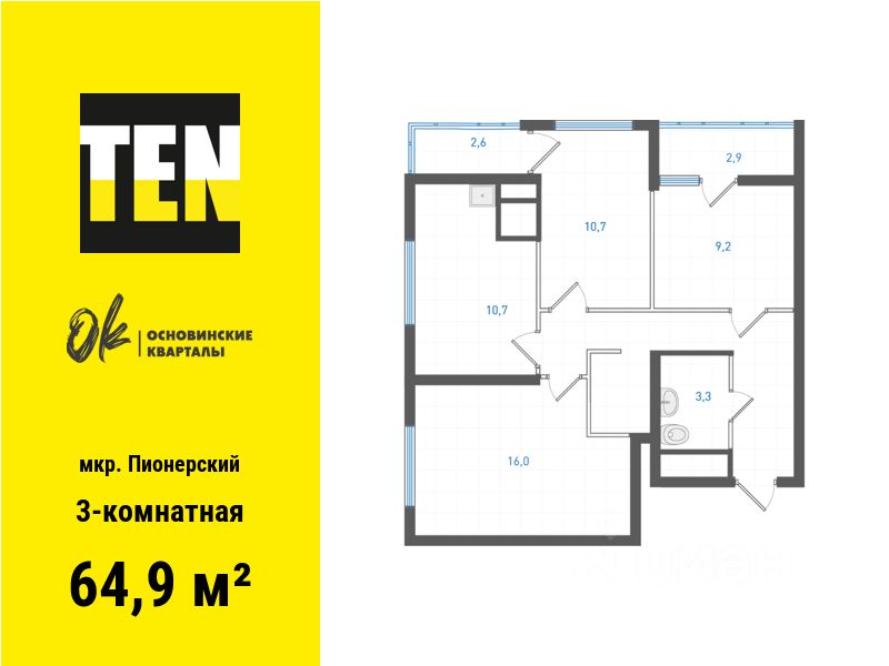 Общая площадь64,9 м²