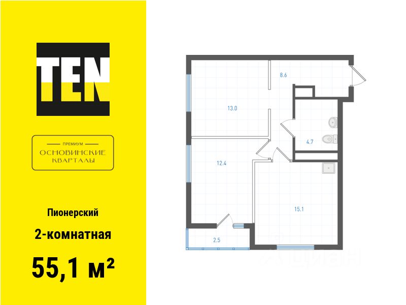 Квартира в ЖК "ОК: Премиум" в Пионерском микрорайоне от застройщика TEN девелопмент! Ключи во 2 квартале 2027 года.