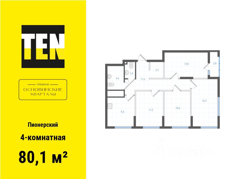 Квартира в ЖК "ОК: Премиум" в Пионерском микрорайоне от застройщика TEN девелопмент! Ключи во 2 квартале 2027 года.