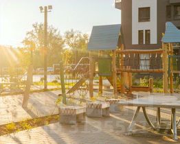Проект включает шесть домов и многоуровневый паркинг. На первых этажах открываются кафе, магазины и полезные сервисы. А в уютных дворах-парках есть детские и спортивные площадки.