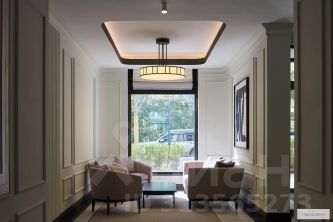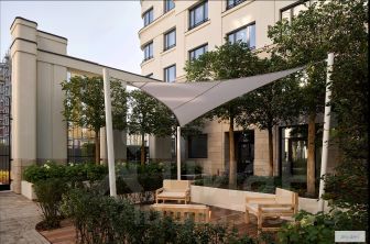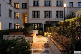 Вход во двор организован через колоннаду. Планировочно он разделён на две части. Парадный партер с большим количеством стриженых растений, фонтанами, цветущими кустарниками и более "домашняя", уютная зона, где высажены деревья и низкорослые хвойные растения, многолетники. В центре двора — две детские площадки. #25gsb8