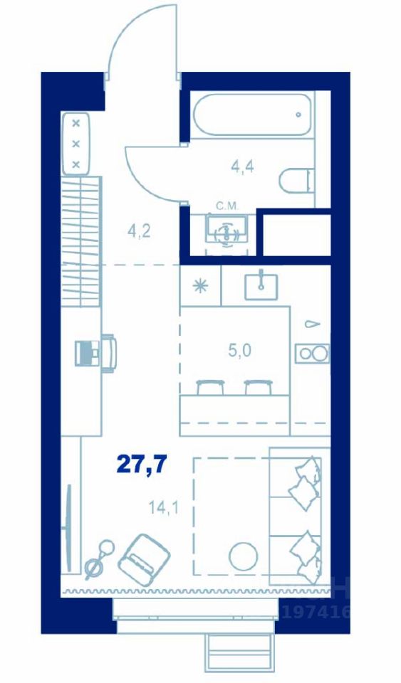 Общая площадь27,7 м²
