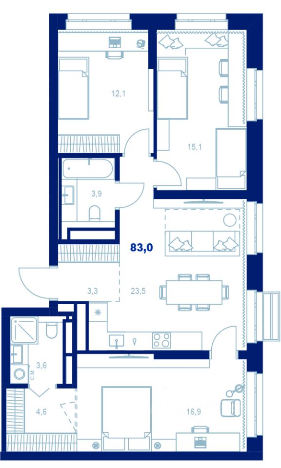 Просторная квартира в "Атлас Ауро" — выбор большой семьи и тех, кто ценит личное пространство.