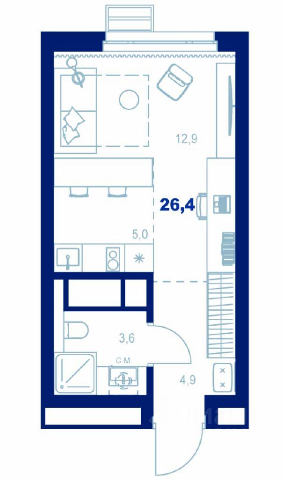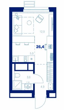 Общая площадь26,4 м²