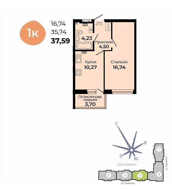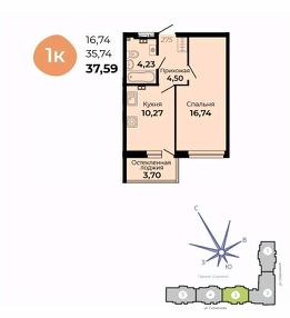 Общая площадь37,59 м²