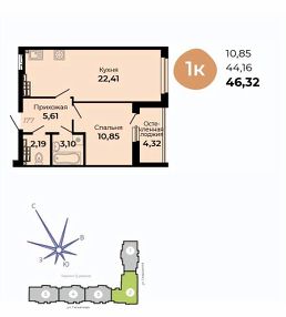 Общая площадь46,32 м²