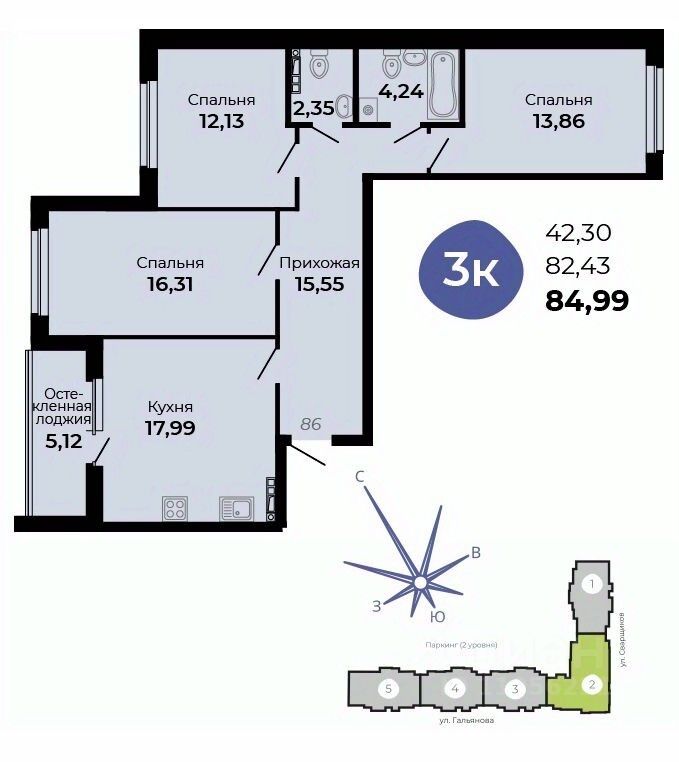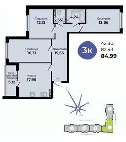Общая площадь84,99 м²
