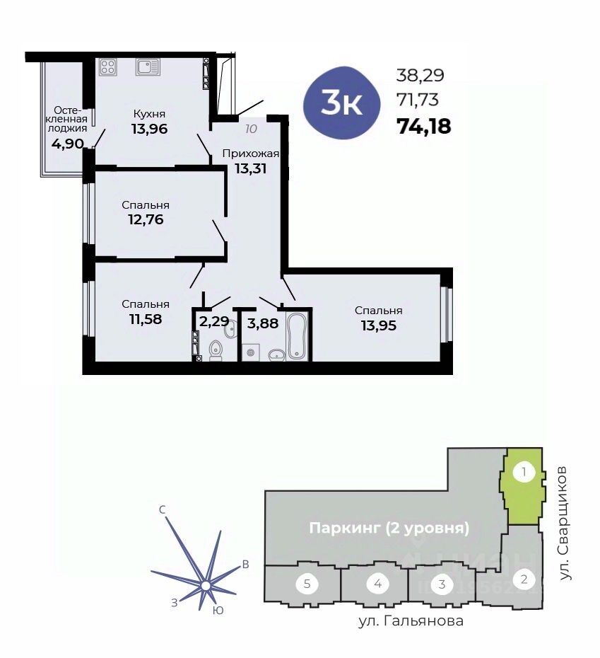 Общая площадь74,18 м²