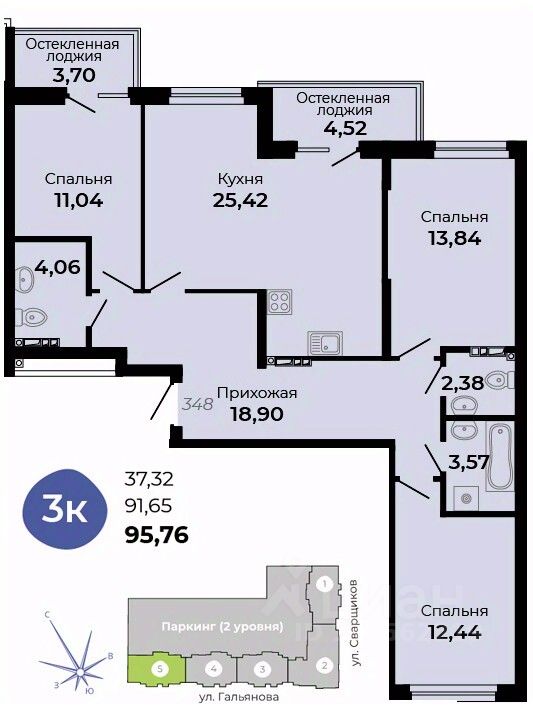 Общая площадь95,76 м²
