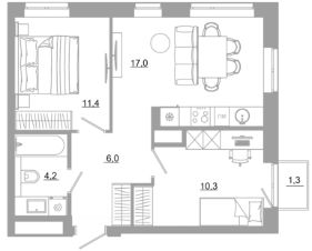 В комплексе представлены десятки планировок с площадью квартир от 26,24 м² до 66,58 м². Каждая учитывает сценарии жизни, эргономичность и функциональность каждого квадратного метра.