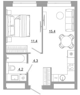 В комплексе представлены десятки планировок с площадью квартир от 26,24 м² до 66,58 м². Каждая учитывает сценарии жизни, эргономичность и функциональность каждого квадратного метра.