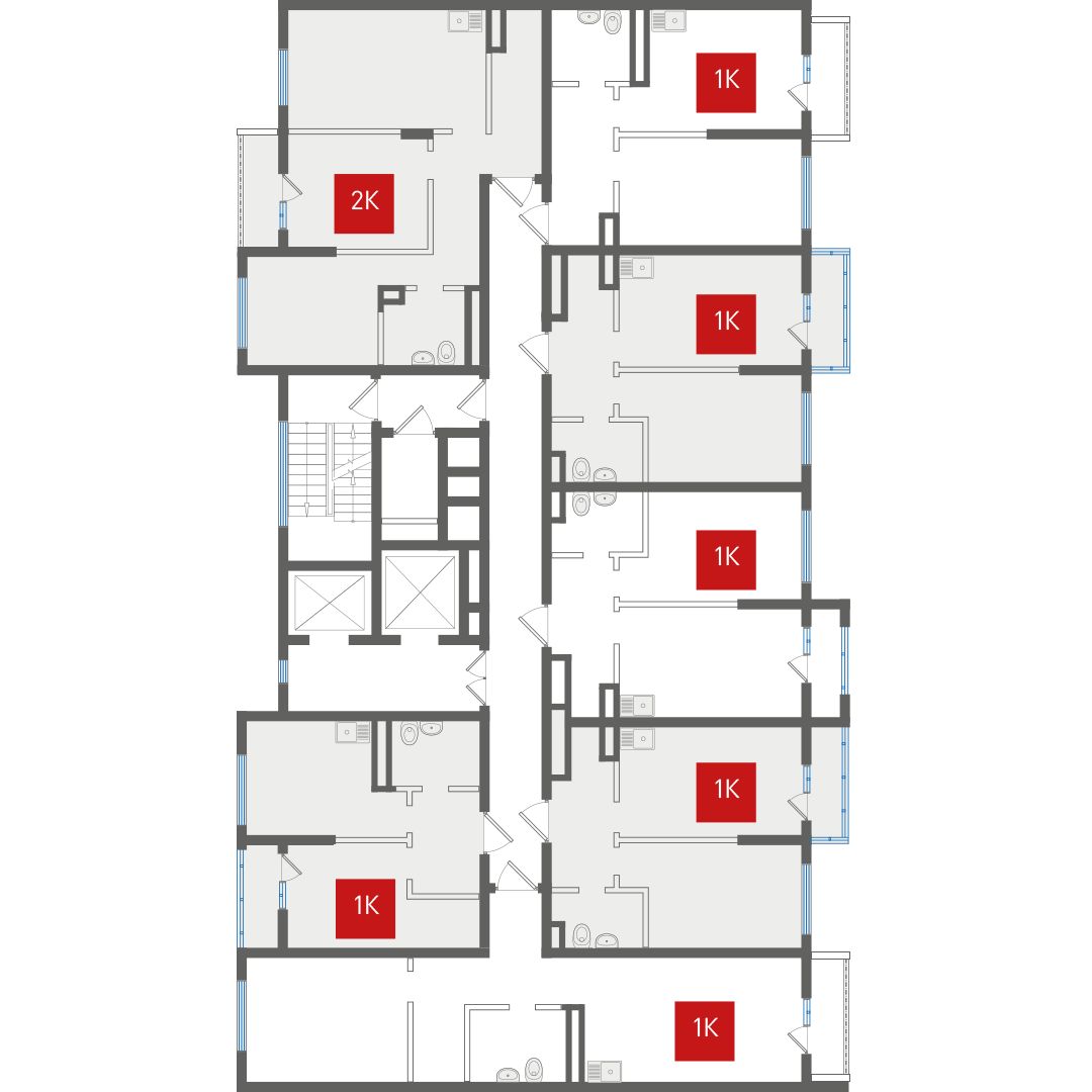 Отделка под чистовую. В санузле — монолитный потолок, на полу — гидроизоляция и стяжка, стены оштукатурены. В одном санузле установлены унитаз и раковина. В остальных помещениях потолок — монолит, на полу — стяжка, стены оштукатурены.