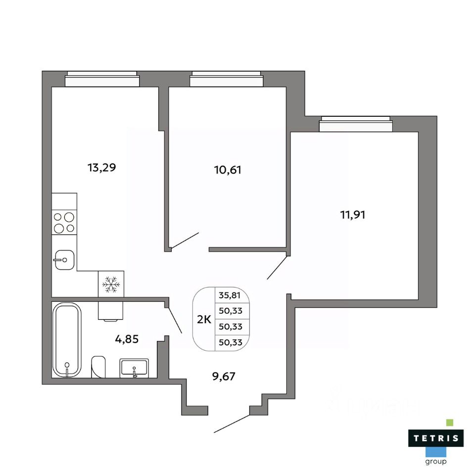 Общая площадь50,33 м²