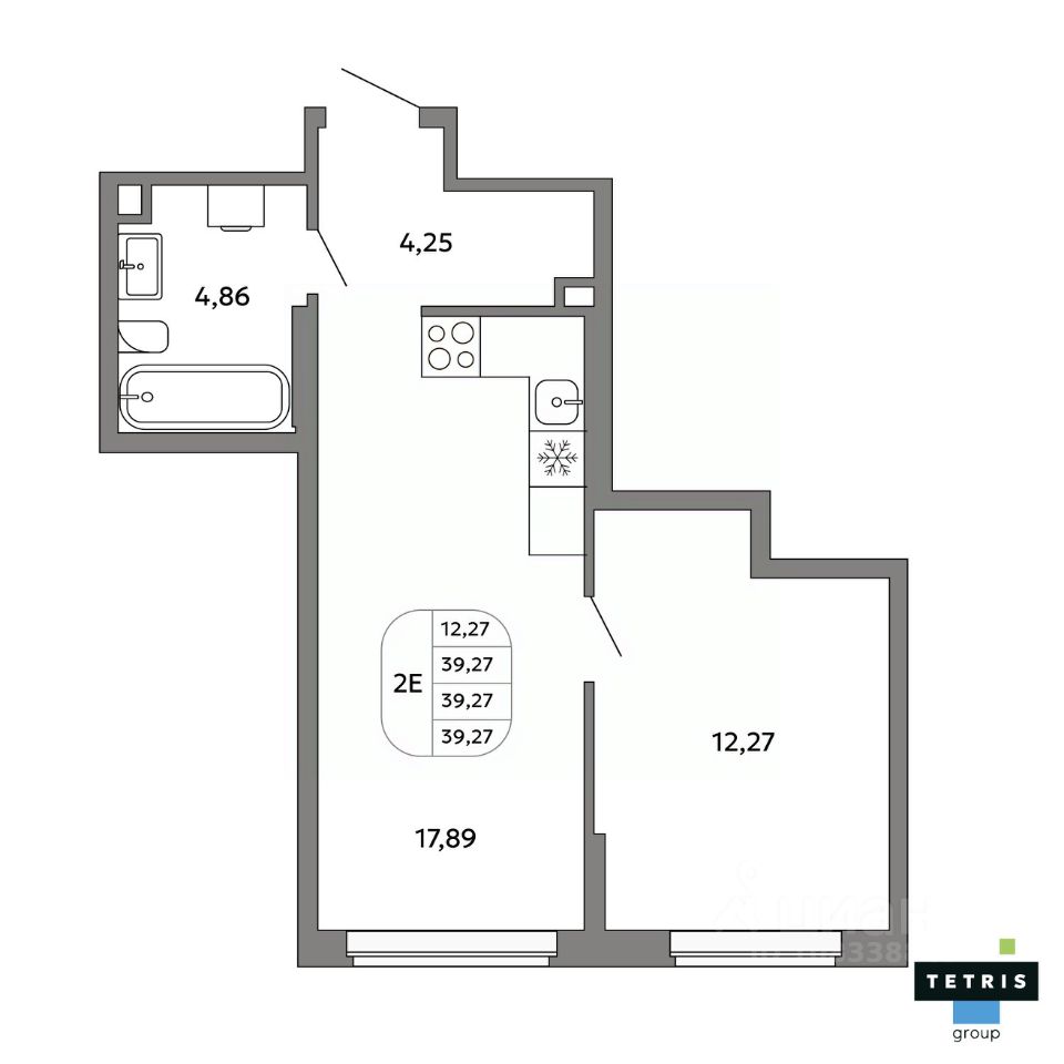 Общая площадь39,27 м²