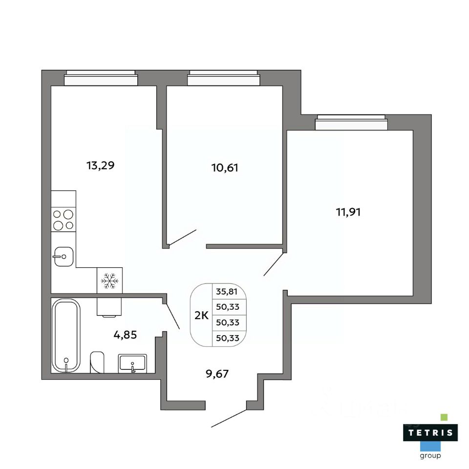 Общая площадь50,33 м²