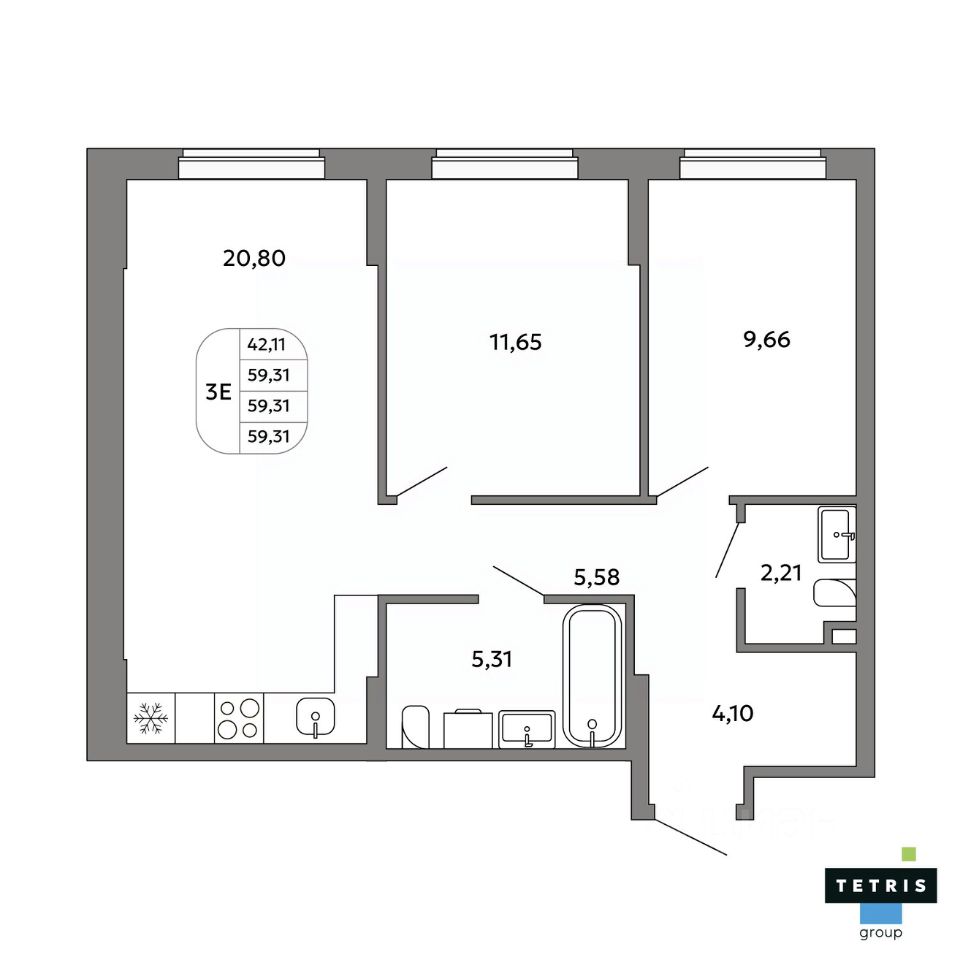 Общая площадь59,31 м²