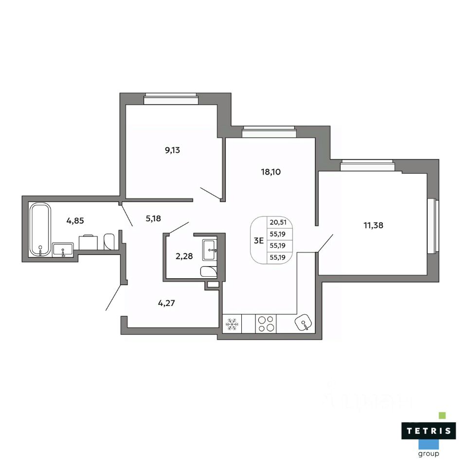 Общая площадь55,19 м²