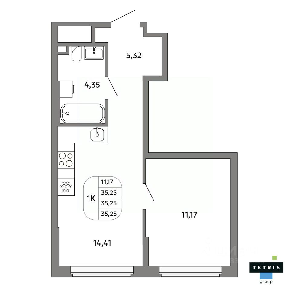 Общая площадь35,25 м²