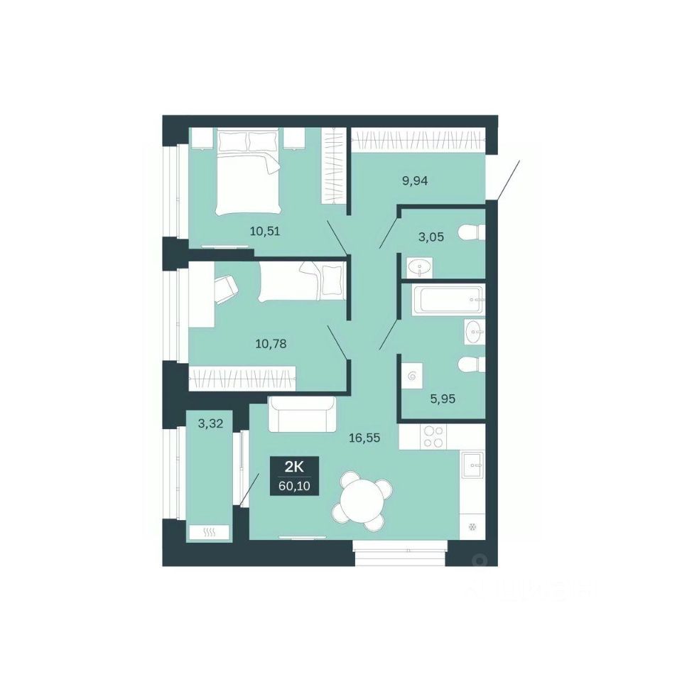 Продаётся 2-комнатная квартира в строящемся доме (Секции 1-4), срок сдачи: II-кв. 2027, общей площадью 56.78 кв.м., на 2 этаже. Новый жилой комплекс "Сибирская калина" от застройщика "СЗ Атлант-Екатеринбург" расположен по адресу: г. Екатеринбург, улица Титова.