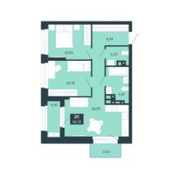 Продаётся 2-комнатная квартира в строящемся доме (Секции 1-4), срок сдачи: II-кв. 2027, общей площадью 61.72 кв.м., на 5 этаже. Новый жилой комплекс "Сибирская калина" от застройщика "СЗ Атлант-Екатеринбург" расположен по адресу: г. Екатеринбург, улица Титова.