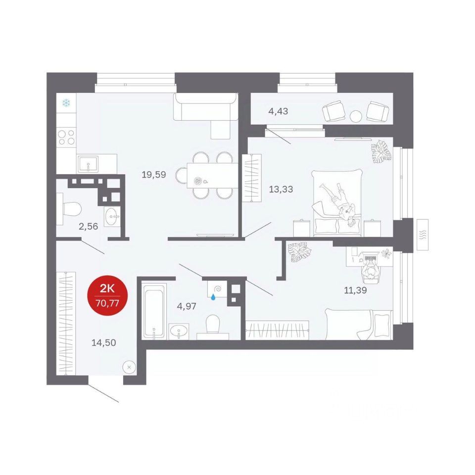 Продаётся 2-комнатная квартира в строящемся доме (Секции 1-4), срок сдачи: II-кв. 2027, общей площадью 66.34 кв.м., на 8 этаже. Новый жилой комплекс "Сибирская калина" от застройщика "СЗ Атлант-Екатеринбург" расположен по адресу: г. Екатеринбург, улица Титова.