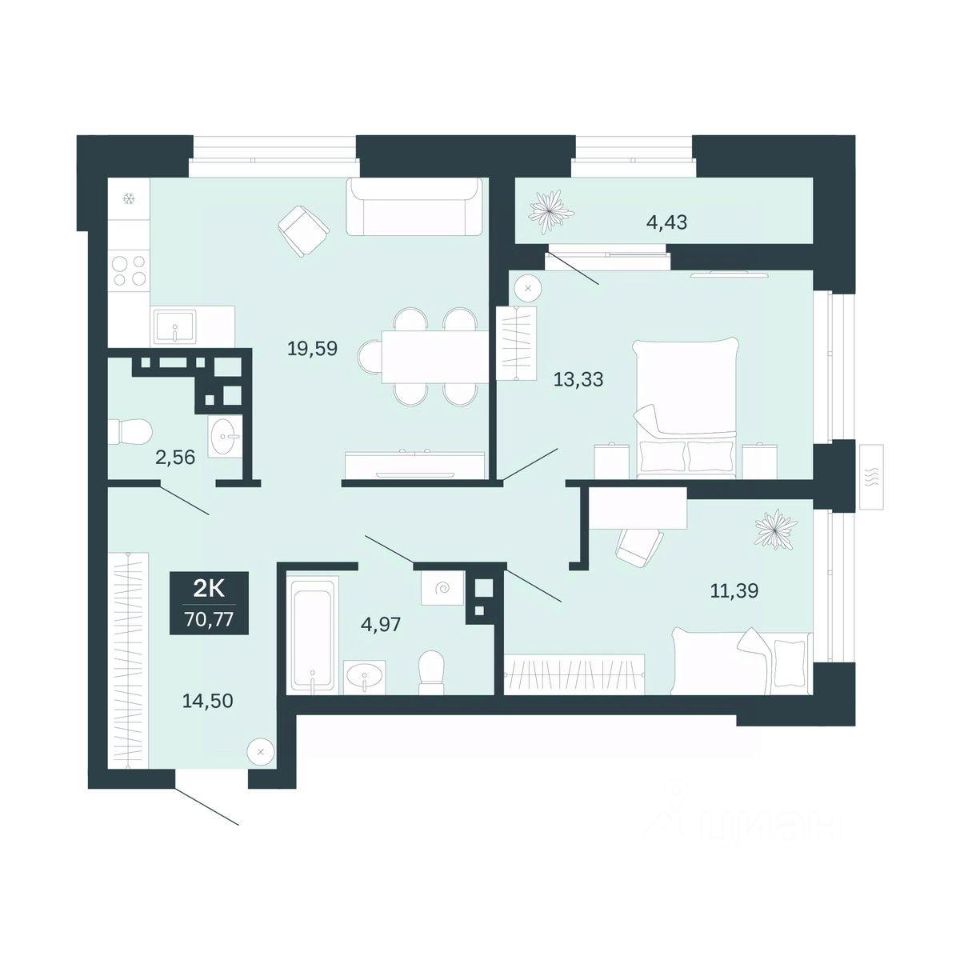 Продаётся 2-комнатная квартира в строящемся доме (Секции 1-4), срок сдачи: II-кв. 2027, общей площадью 66.34 кв.м., на 10 этаже. Новый жилой комплекс "Сибирская калина" от застройщика "СЗ Атлант-Екатеринбург" расположен по адресу: г. Екатеринбург, улица Титова.