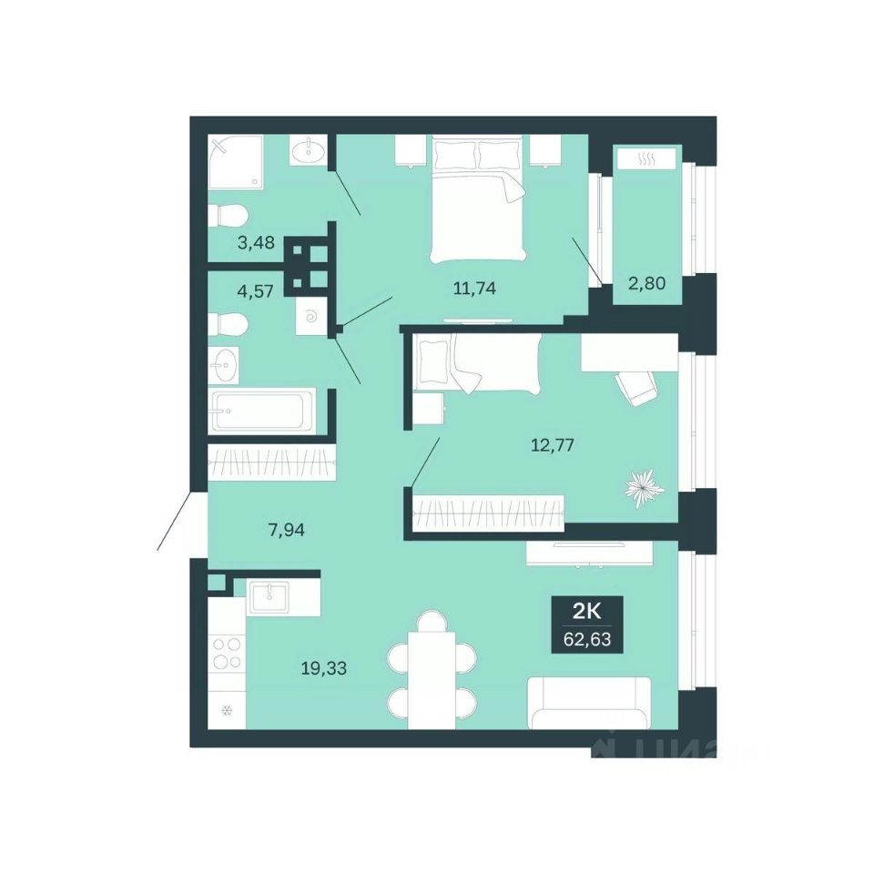 Продаётся 2-комнатная квартира в строящемся доме (Секции 1-4), срок сдачи: II-кв. 2027, общей площадью 59.83 кв.м., на 10 этаже. Новый жилой комплекс "Сибирская калина" от застройщика "СЗ Атлант-Екатеринбург" расположен по адресу: г. Екатеринбург, улица Титова.