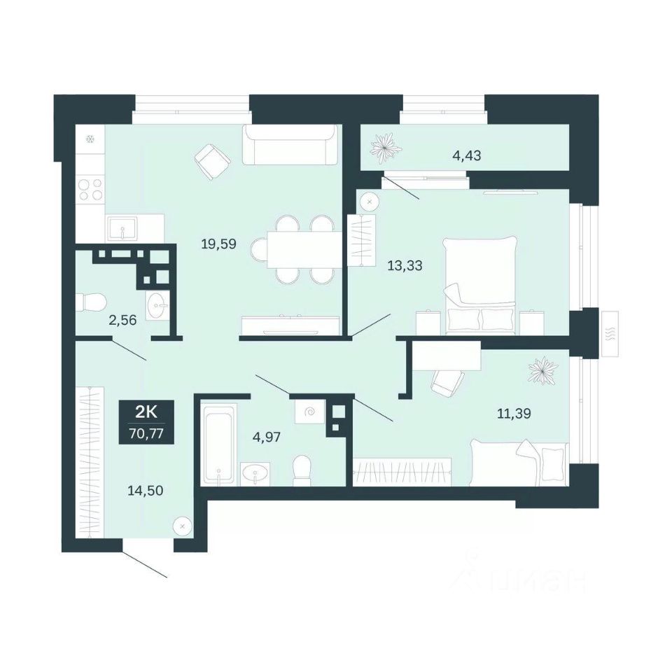 Продаётся 2-комнатная квартира в строящемся доме (Секции 1-4), срок сдачи: II-кв. 2027, общей площадью 66.34 кв.м., на 12 этаже. Новый жилой комплекс "Сибирская калина" от застройщика "СЗ Атлант-Екатеринбург" расположен по адресу: г. Екатеринбург, улица Титова.
