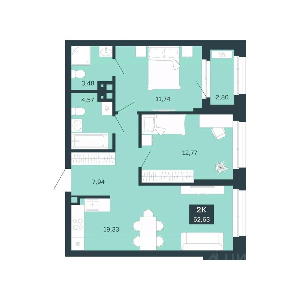 Продаётся 2-комнатная квартира в строящемся доме (Секции 1-4), срок сдачи: II-кв. 2027, общей площадью 59.83 кв.м., на 12 этаже. Новый жилой комплекс "Сибирская калина" от застройщика "СЗ Атлант-Екатеринбург" расположен по адресу: г. Екатеринбург, улица Титова.