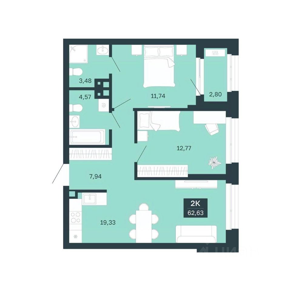 Продаётся 2-комнатная квартира в строящемся доме (Секции 1-4), срок сдачи: II-кв. 2027, общей площадью 59.83 кв.м., на 13 этаже. Новый жилой комплекс "Сибирская калина" от застройщика "СЗ Атлант-Екатеринбург" расположен по адресу: г. Екатеринбург, улица Титова.