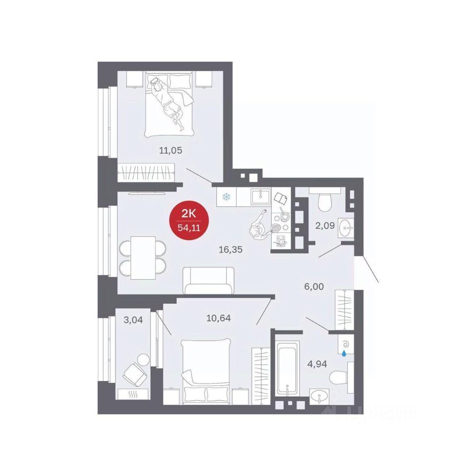 54,11 м²