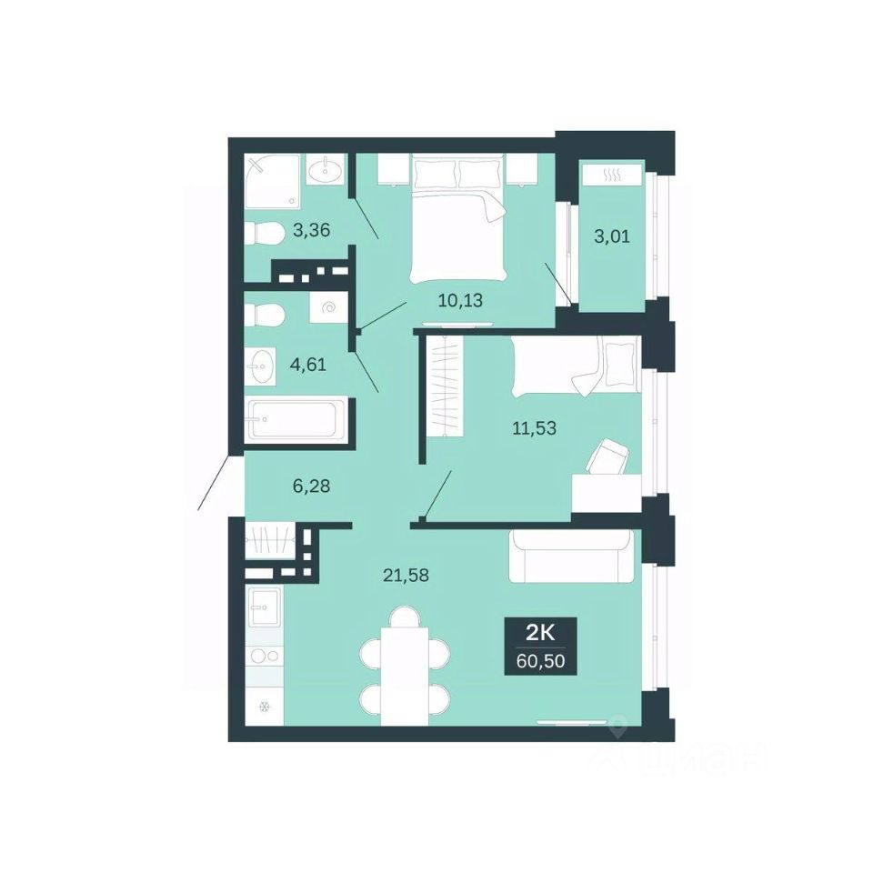 Продаётся 2-комнатная квартира в строящемся доме (Секции 1-4), срок сдачи: II-кв. 2027, общей площадью 57.49 кв.м., на 4 этаже. Новый жилой комплекс "Сибирская калина" от застройщика "СЗ Атлант-Екатеринбург" расположен по адресу: г. Екатеринбург, улица Титова.