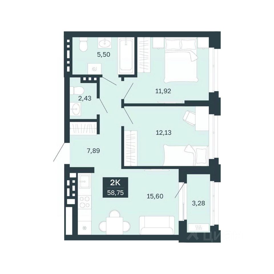 Продаётся 2-комнатная квартира в строящемся доме (Секции 1-4), срок сдачи: II-кв. 2027, общей площадью 55.47 кв.м., на 6 этаже. Новый жилой комплекс "Сибирская калина" от застройщика "СЗ Атлант-Екатеринбург" расположен по адресу: г. Екатеринбург, улица Титова.