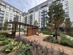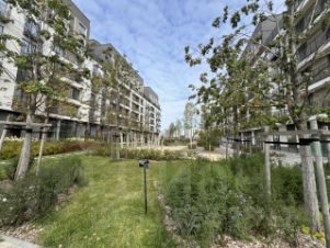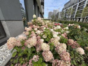 Зеленый двор - растения занимают около 70% територии и служат буферами между террасами квартир на первых этажах и активнои зонои. Деревья, кустарники и травы подобраны таким образом, чтобы в каждый сезон двор имел свой цвет. Чтобы прогулки стали познавательнее, рядом с деревьями и кустарниками будут установлены таблички с их названиями и кратким описанием.