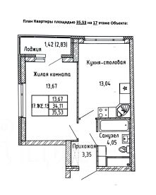 Общая площадь 35.53 м2 на 17 этаже. Этажей в доме: 28.
