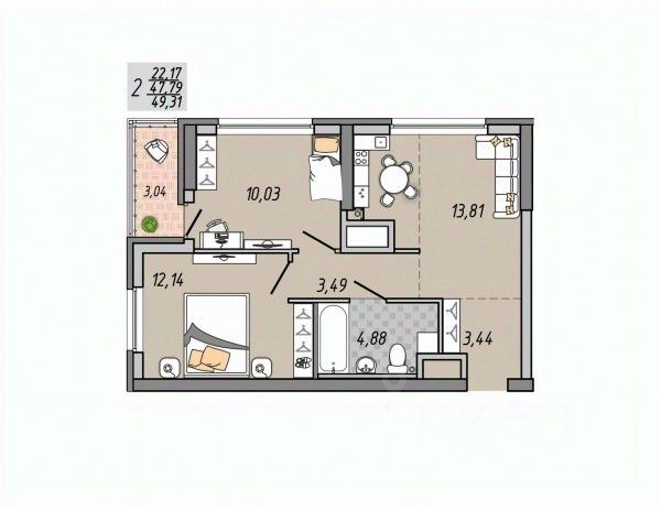 Продаётся 2-комнатная квартира в сданном доме (Дом 10), срок сдачи: II-кв. 2024, общей площадью 49.31 кв.м., на 29 этаже.