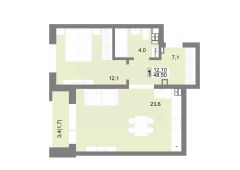Продаётся 1-комнатная квартира в строящемся доме (Дом 1 секции 1-5), срок сдачи: II-кв. 2026, общей площадью 48.5 кв.м., на 12 этаже. Дом комфорт-класса на песчаном берегу Верх-Исетского пруда.